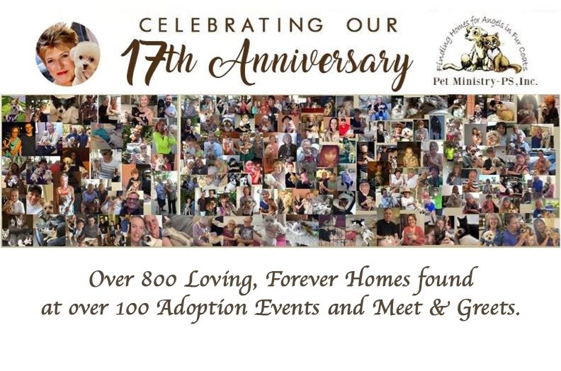 Pet Ministry-PS, Inc., celebrated our 17th Anniversary in February, 2026. In the past 17 years, we have found loving, forever homes for over 500 rescued dogs and cats. We have funded spay/neuter of adopted pets, helped people who need assistance with medical expenses and vet referrals and have provided food for rescued pets. We also post photos on Facebook of pets that may be lost or missing and rescued dogs and cats that are available for adoption. Pets for adoption are available at individual “Meet & Greets” and at adoption events at Center for Spiritual Living-Palm Springs located at 2100 E Racquet Club Rd, Palm Springs, California when rescued pets are available on Sundays at 11:30 am.